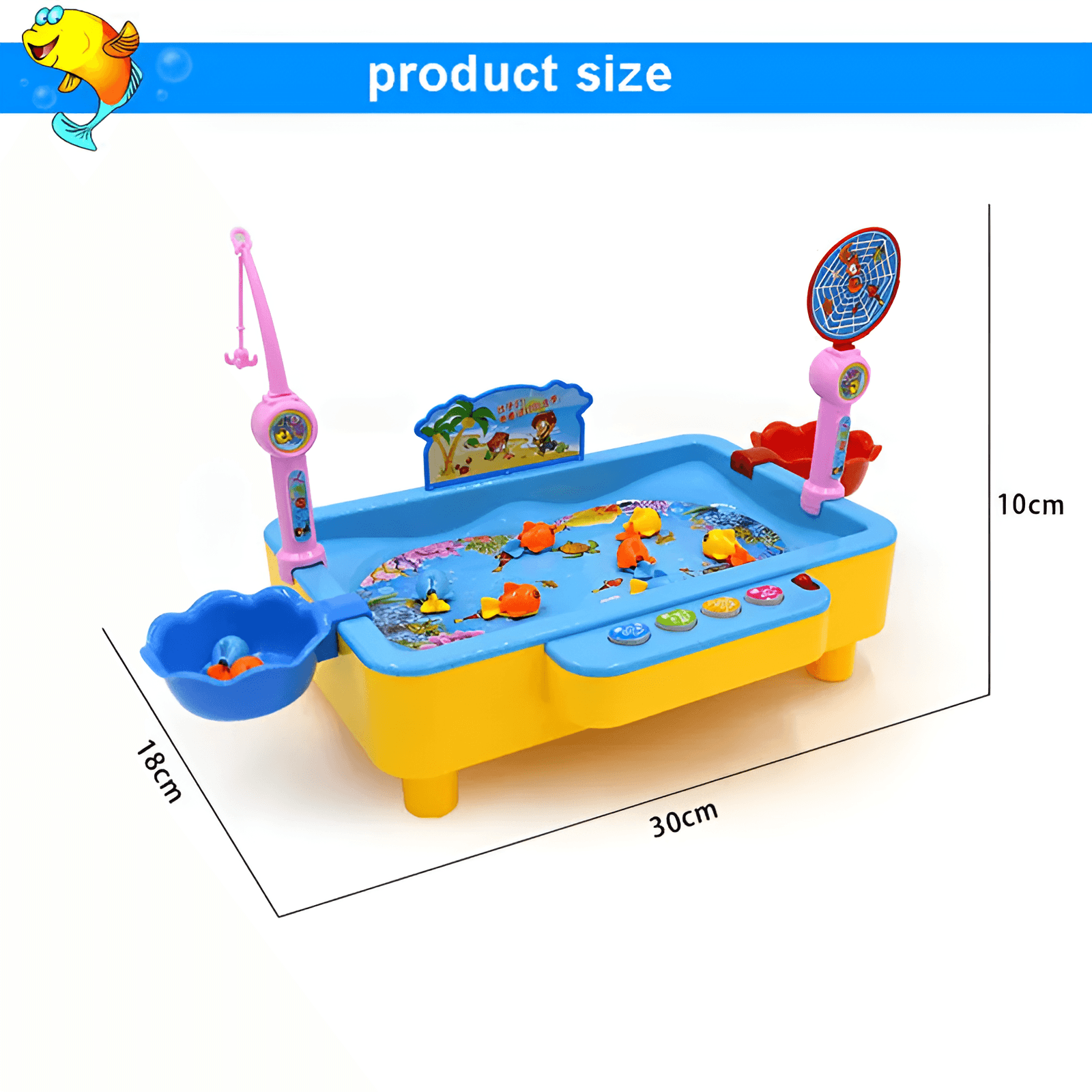 The use of high-quality ABS plastic materials, smooth edges, no burr, non-toxic tasteless, safe and environmentally friendly.ย Electric music fishing terrace, can play for parent-child interaction through fishing and catching fish, improve the children's ability of hand-eye coordination. Music functions expand children's horizons. A key to start and fully functional, four buttons with different music and poetry. Fish plate played with water! Make the fish plate be full of water and get the baby prefer it, and it is more interesting. Bright colors can better attract children's attention, thereby stimulating the baby's visual development.