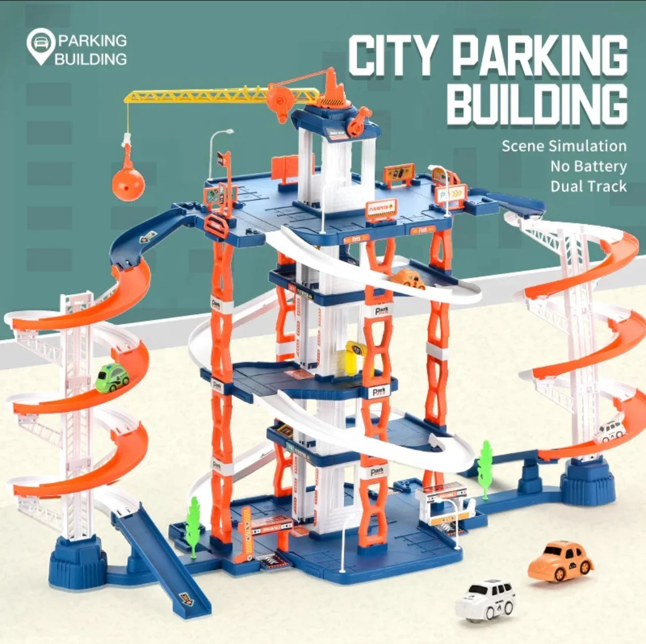 Whether it's racing down spiral ramps, using the crane, or operating the manual elevator – this toy delivers a complete scene simulation experience without the need for batteries.