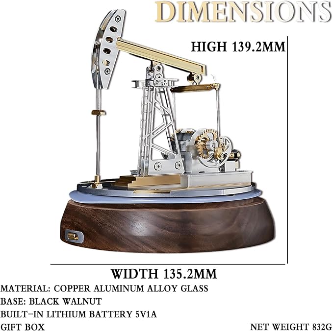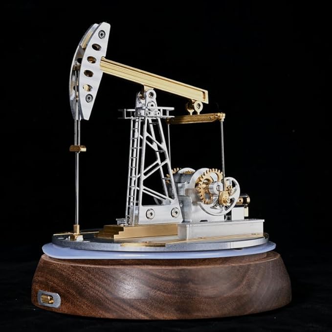 Experience the perfect fusion of engineering precision and artistic craftsmanship with the Travelling Beam Pumping Machine. This finely balanced model is built with CNC-machined parts, offering a small yet powerful display piece that’s clean, delicate, and visually striking.