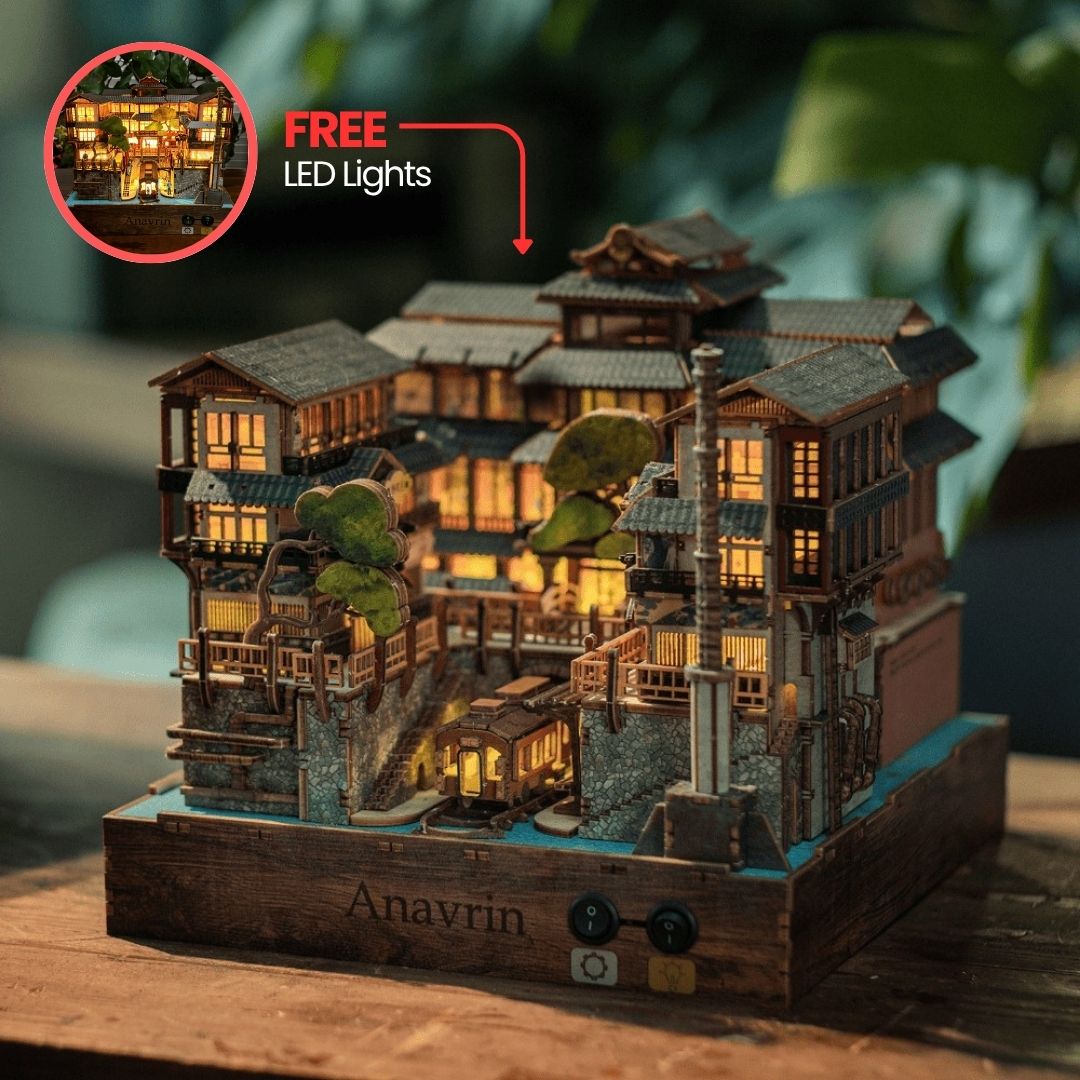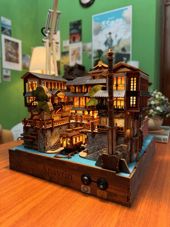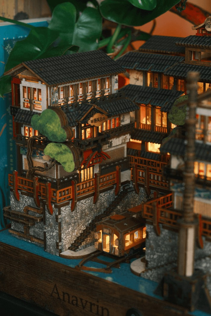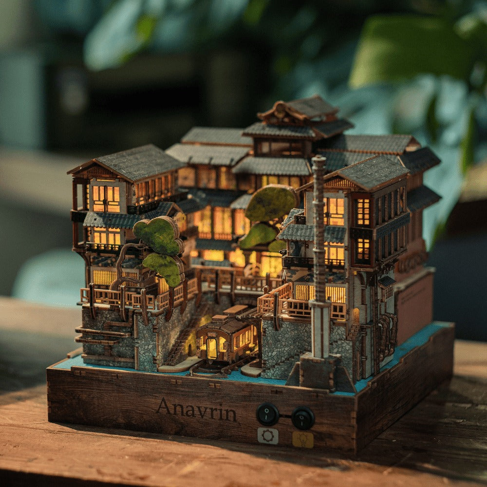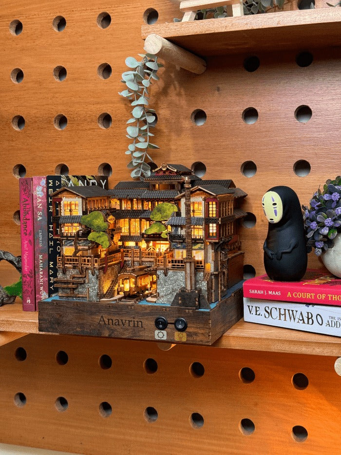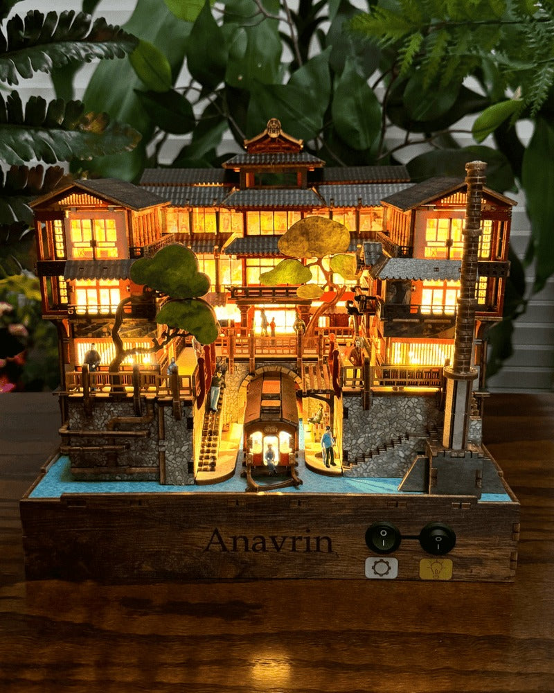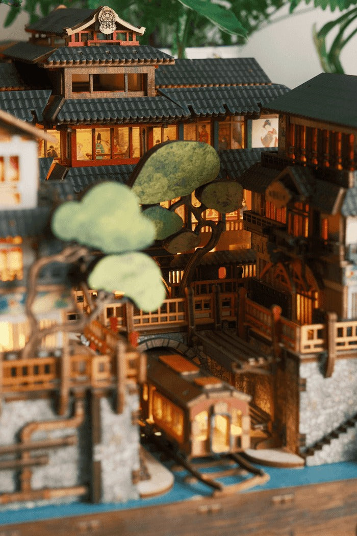 Ginzan Onsen is the newest gem in our exclusive motion kit series (you won’t find motion book nooks like ours anywhere else!). With just a flip of a switch, two moving parts bring this miniature to life, mimicking the authentic water system of old Japan. We've also added a motorized motion film that beautifully captures a traditional Japanese dining scene, making this kit a truly immersive experience.