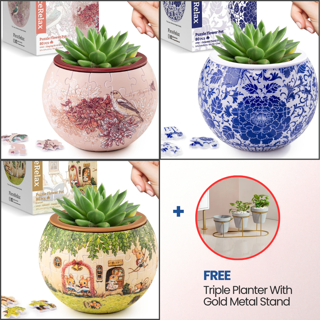 Discover a puzzle that blossoms with creativity! Featuring 80 uniquely curved pieces, this 3D flowerpot puzzle is more than just a fun challenge—it's a stylish piece of functional art for your space.