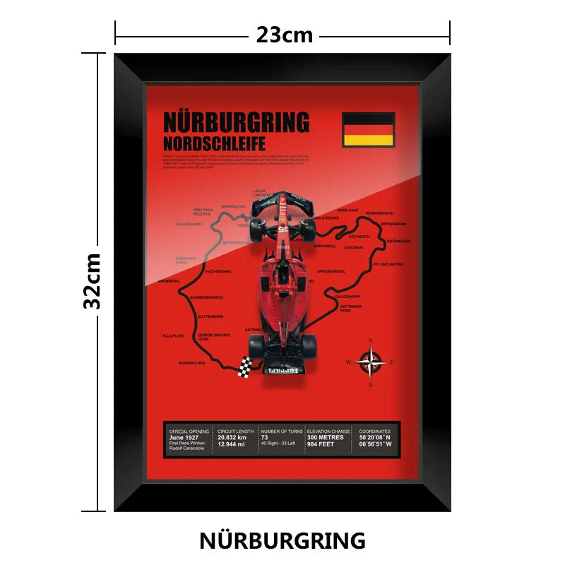 Feel the thrill of Formula 1 with 3D frames featuring iconic cars and legendary circuit maps.