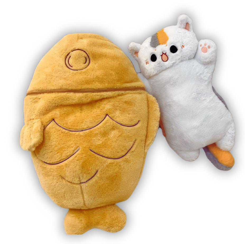 Unzip the fish to reveal a cute little kitten in a playful costume! This fun surprise makes it more than just a pillow — it’s a plush with personality that sparks joy at first sight✨.