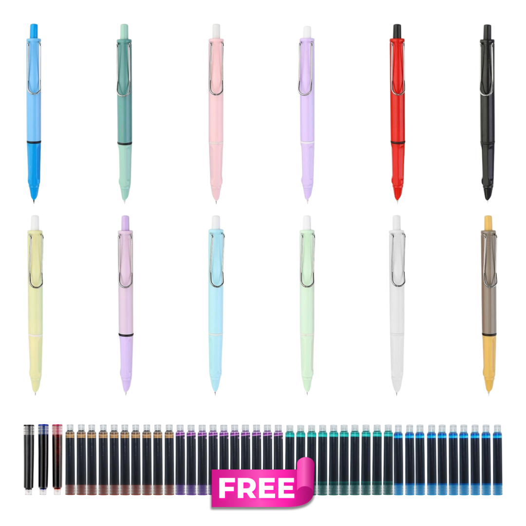 【Replaceable Ink Sac】--- Just press the ink sac into a pen, and the installation is successful when a click is heard.The sturdy nib and excellent grip guarantee a comfortable writing experience. The nib is made of Iridium gold material, which is more durable,no need to worry about breaking the nib. Ink can also be used.